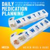 - ABSOLUTE MEDI-PLANNER: The pill reminder is translucent and every lid is labeled with one weekday, to help you plan your 7 day medication accurately.
