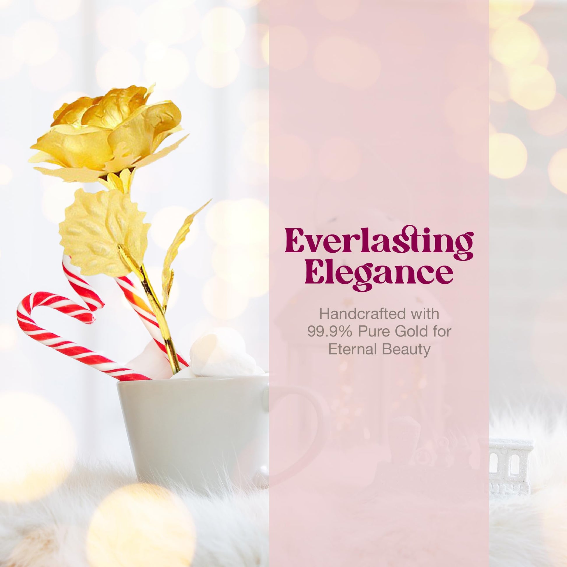 - EVERLASTING BEAUTY: Our 24k 10-inch Gold Foil Rose is meticulously handcrafted using highly purified 24K 99.9% gold leaf, ensuring a lasting symbol of beauty, love, and appreciation to your cherished loved ones. Unlike traditional roses, this golden rose will never wither, providing enduring beauty that lasts forever.