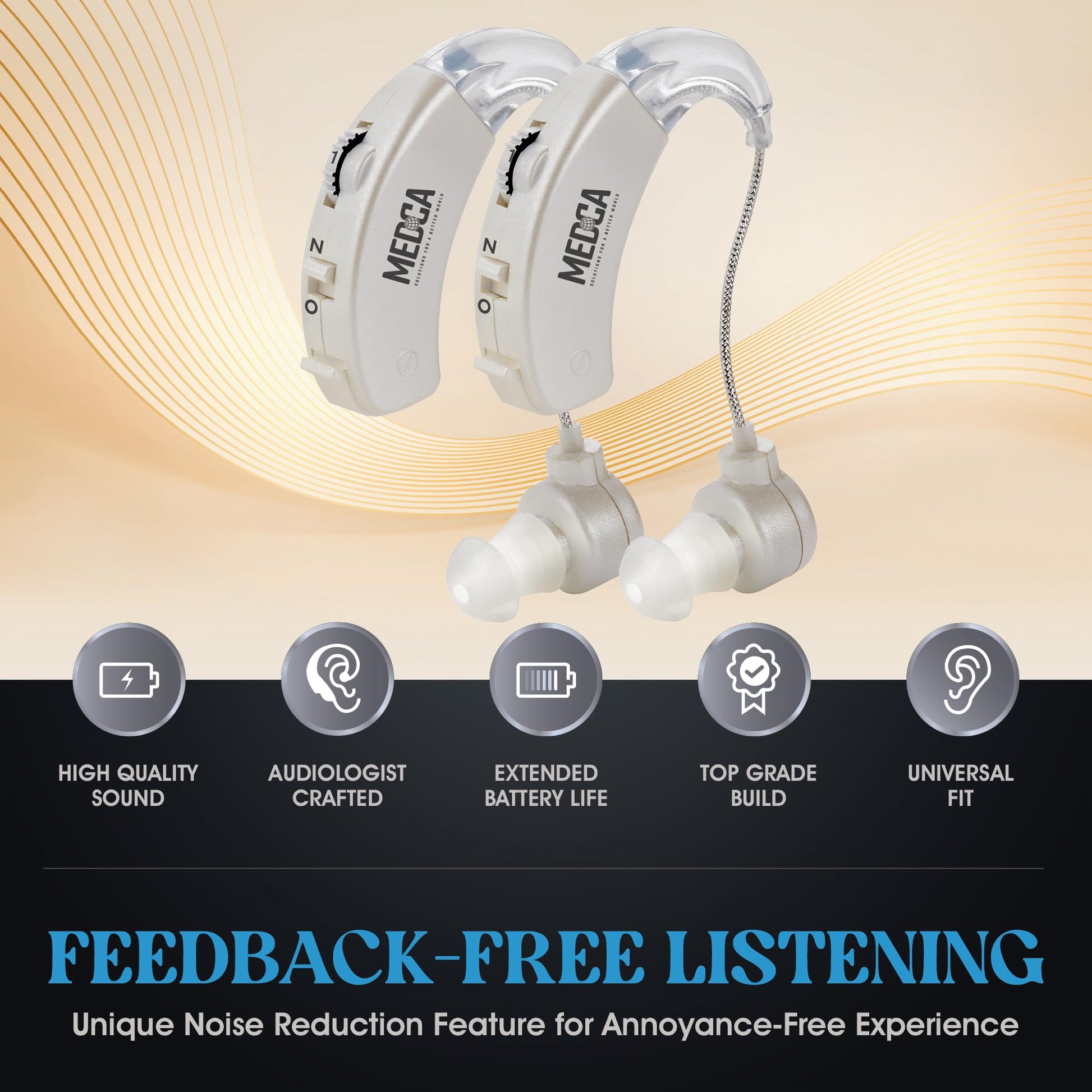 - AMAZING! HEAR EVERYTHING PERFECTLY CLEAR: Wouldn't you love being able to hear anything you need to as crystal clear as it is meant to sound. Well, if you've been looking for a device that allows you to hear anything, then your search is over! That's because the MEDca behind the ear sound amplifier offers high quality digital BTE amplifiers which means that you can hear everything that you've been missing, guaranteed!