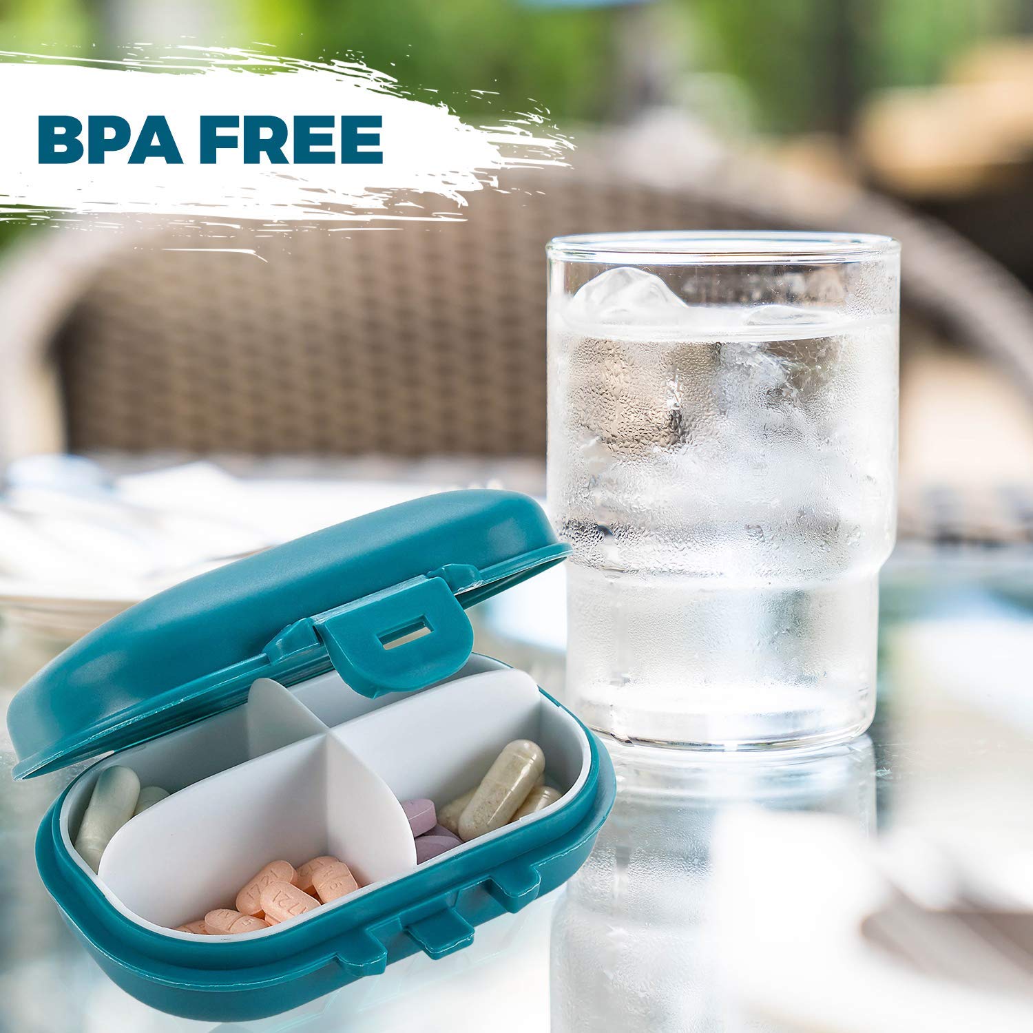 - ❰HIGH QUALITY! BPA FREE❱ The MEDca Pill Organizer is made of solid food grade PP material, that is odorless and BPA free. Features an airtight seal and securely locks so pills will not spill out. MEASURES: 3.75" x 2.56" x 1.4" - Conveniently designed with 4 plastic compartments to help easily track your medications planned in your daily life. Great gift for loved ones, family and friends you care for and worry they need a better reminder to take their medication!