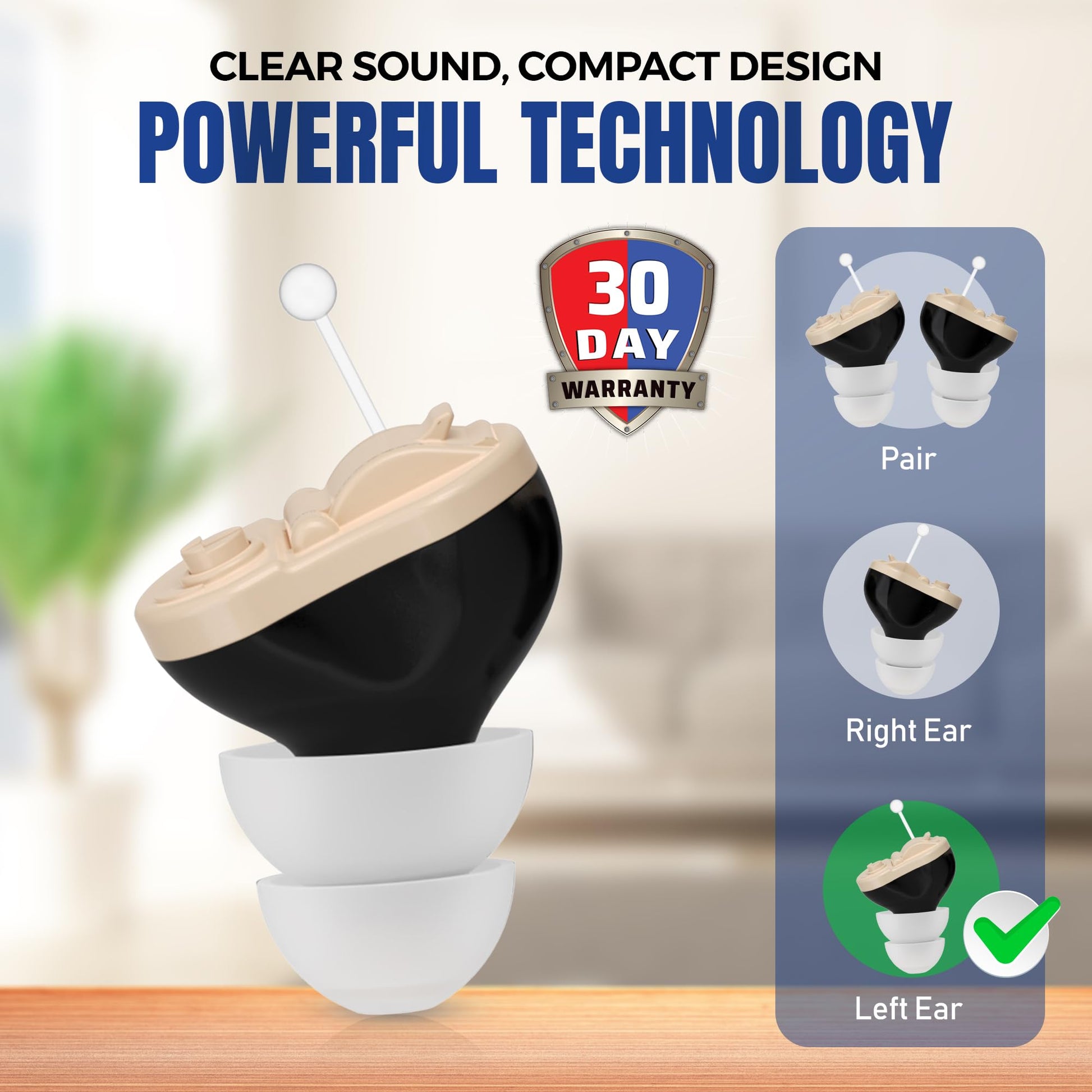 INCLUDES: Left Ear, Black CIC Hearing Amplifier