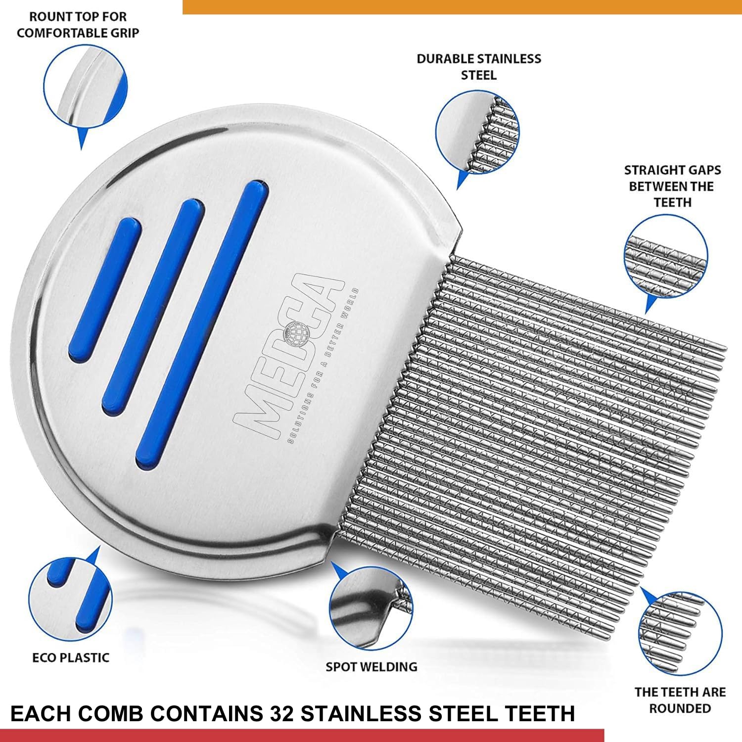 Lice Comb - (Pack of 2) Stainless Steel Professional Lice Combs and Head Lice Treatment to Effectively Get Rid of Hair Lice and Nits, Best Results for Infect...