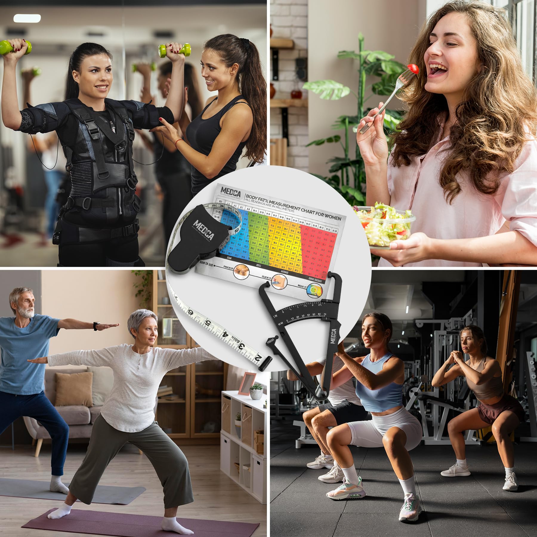 - NEW DESIGN! ACCURATELY DETERMINE BODY FAT PERCENTAGE: Manage your health wisely with the newly designed MEDca Body Fat Caliper with body measurement tape and get very accurate consistant measurements every time. That's because our body fat caliper includes a full set including a click in caliper measure with slide ruler, instructional chart, and body measuring tape which means that you'll be able to measure your body fat content easily and accurately, resulting in more effective dieting!