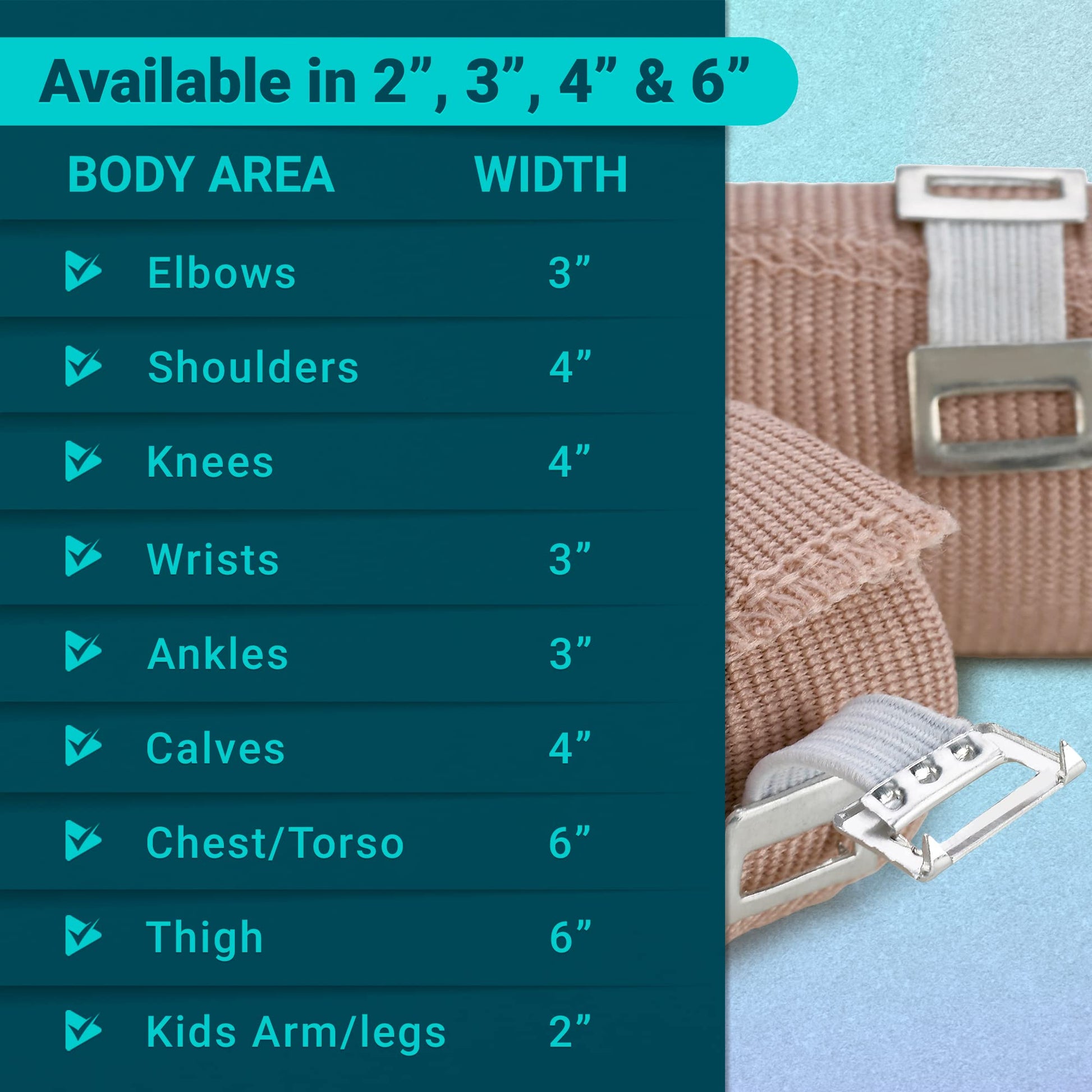 - ★ CRITICAL - A MUST HAVE FOR YOUR FIRST AID KIT: Add this Pack of 2 in / 3 in / 4 in / 6 in x 5 Feet Elastic Wrap Bandages with hooks to your first aid kid and get ready to enjoy total peace of mind with the best elastic bandages you'll have the added benefit of always being prepared. If you are putting together a med kit these are a must have for everyone including; athletic trainers, hiking/camping trips, first aid kits, athletes and any medical professionals.