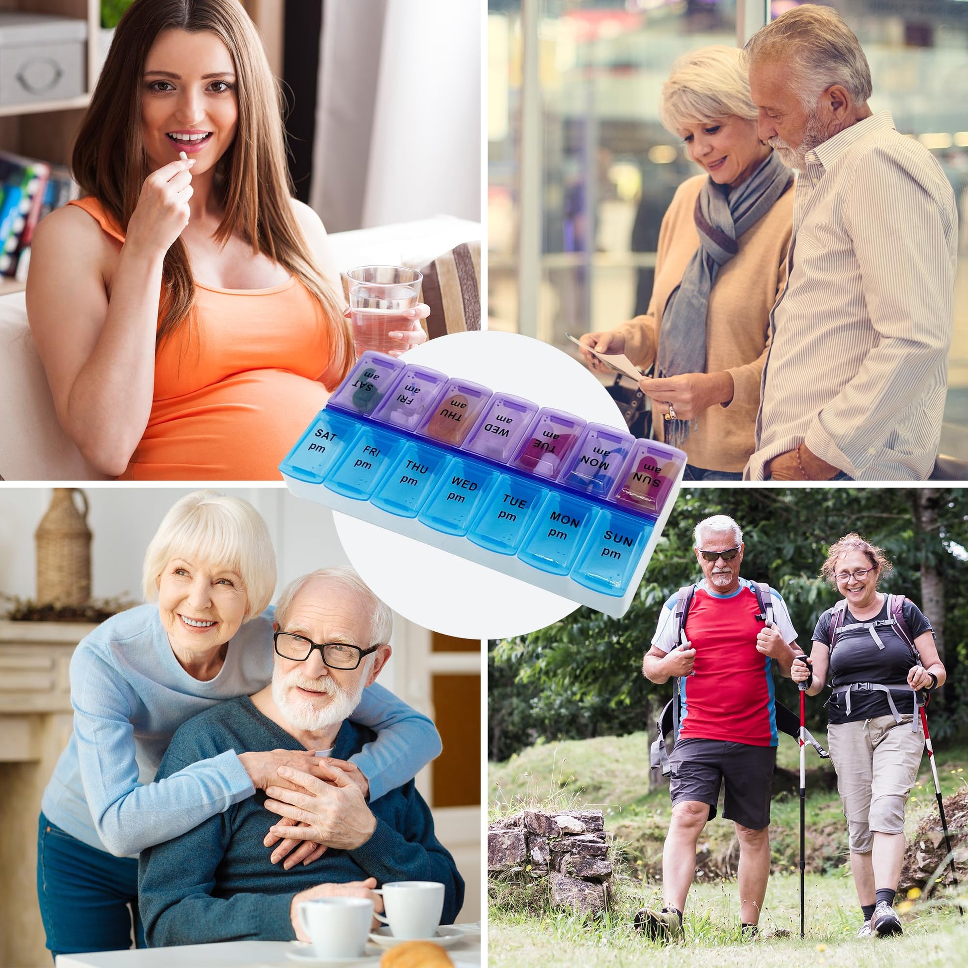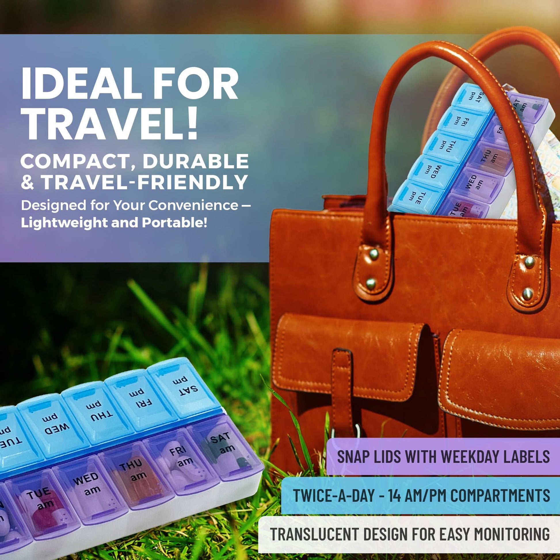 - CONVENIENT AND EASY TO USE: This weekly pill reminder comes with snap lids that indicate the day of the week with letters. Its lids are translucent, so you'll know if you have taken your medicine without opening the lid.