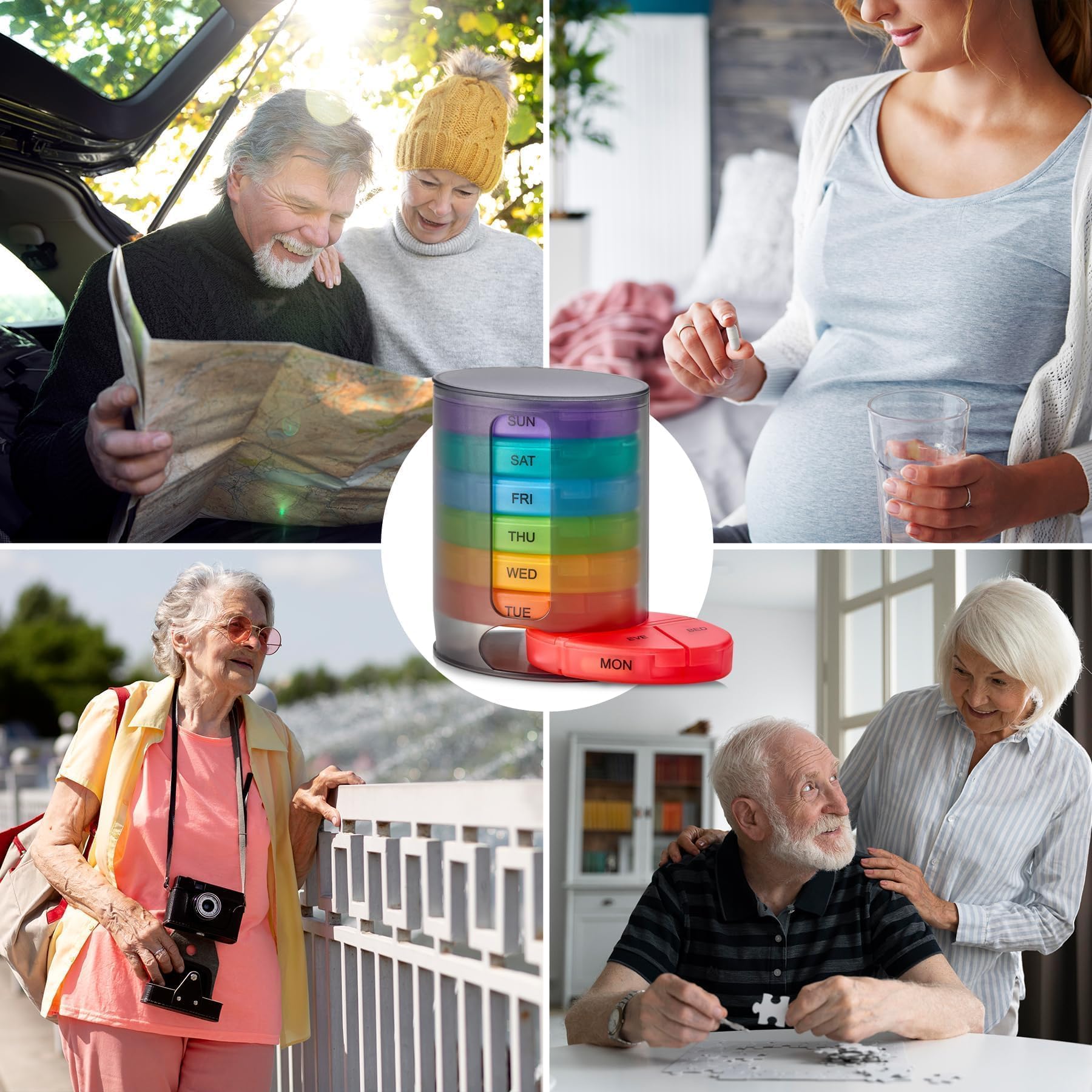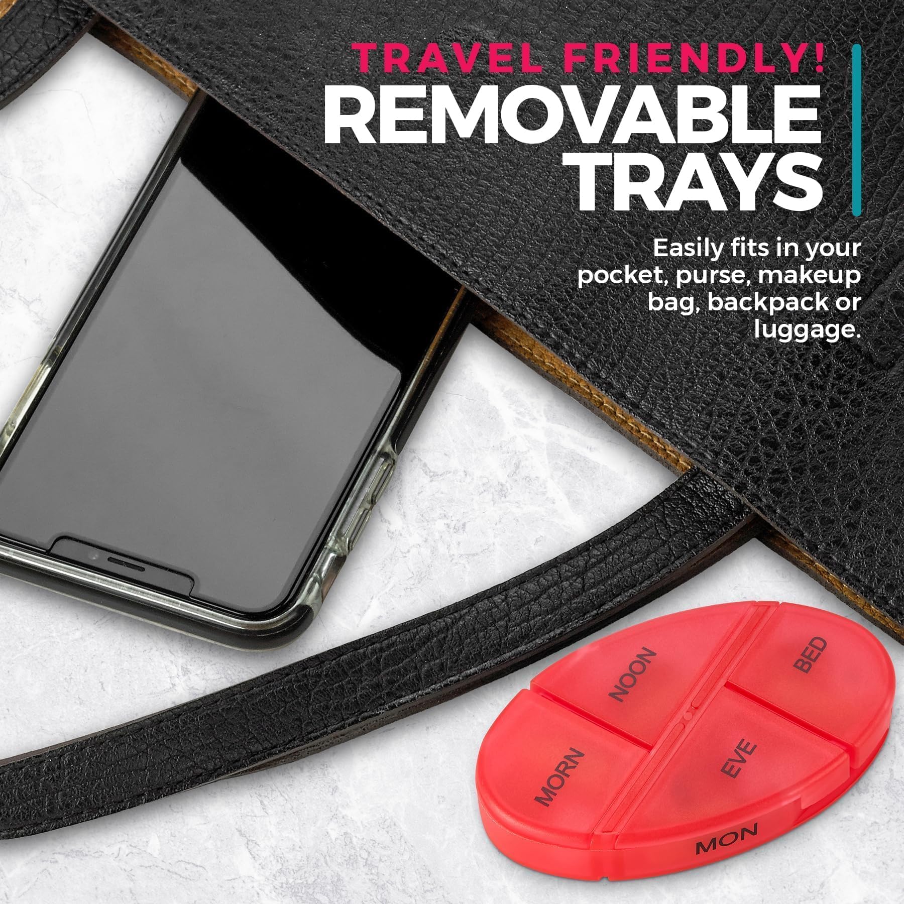 - BRIGHT EASY TO SEE COLORS: The outer case is designed transparent and each tray has unique bright color for the user to easily distinguish days of the week.