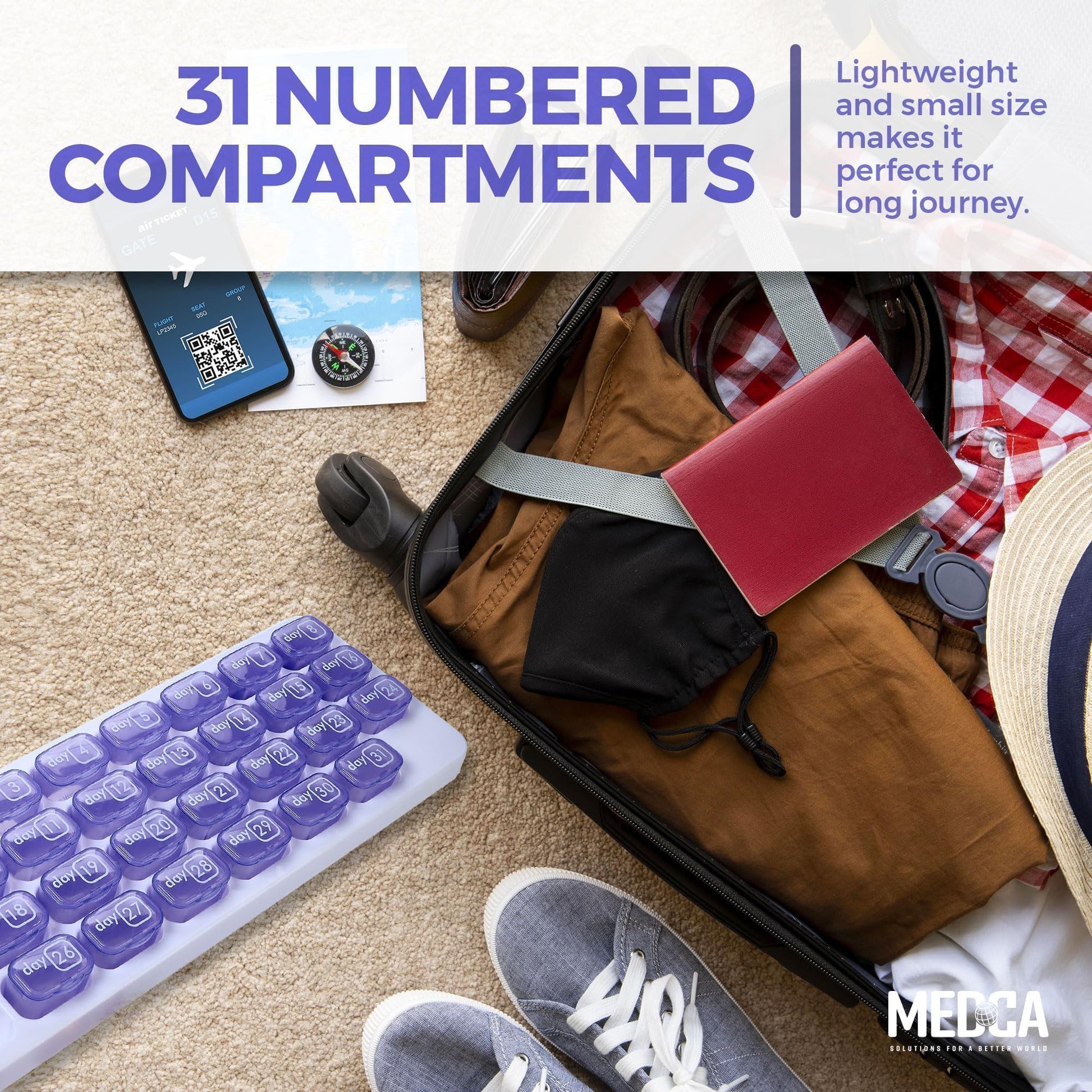 - ORGANIZE A MONTH OF MEDICATION IN ONE NEAT PLACE: Picture being able to put all the pill bottles back in the medicine cabinet and have one place to store a month worth of pills and medication by the day without getting confused. Our new MEDca monthly pill organizer helps you neatly organize your monthly prescription in daily doses using 31 Pop Out Pods that are laid out in a clean, white tray.