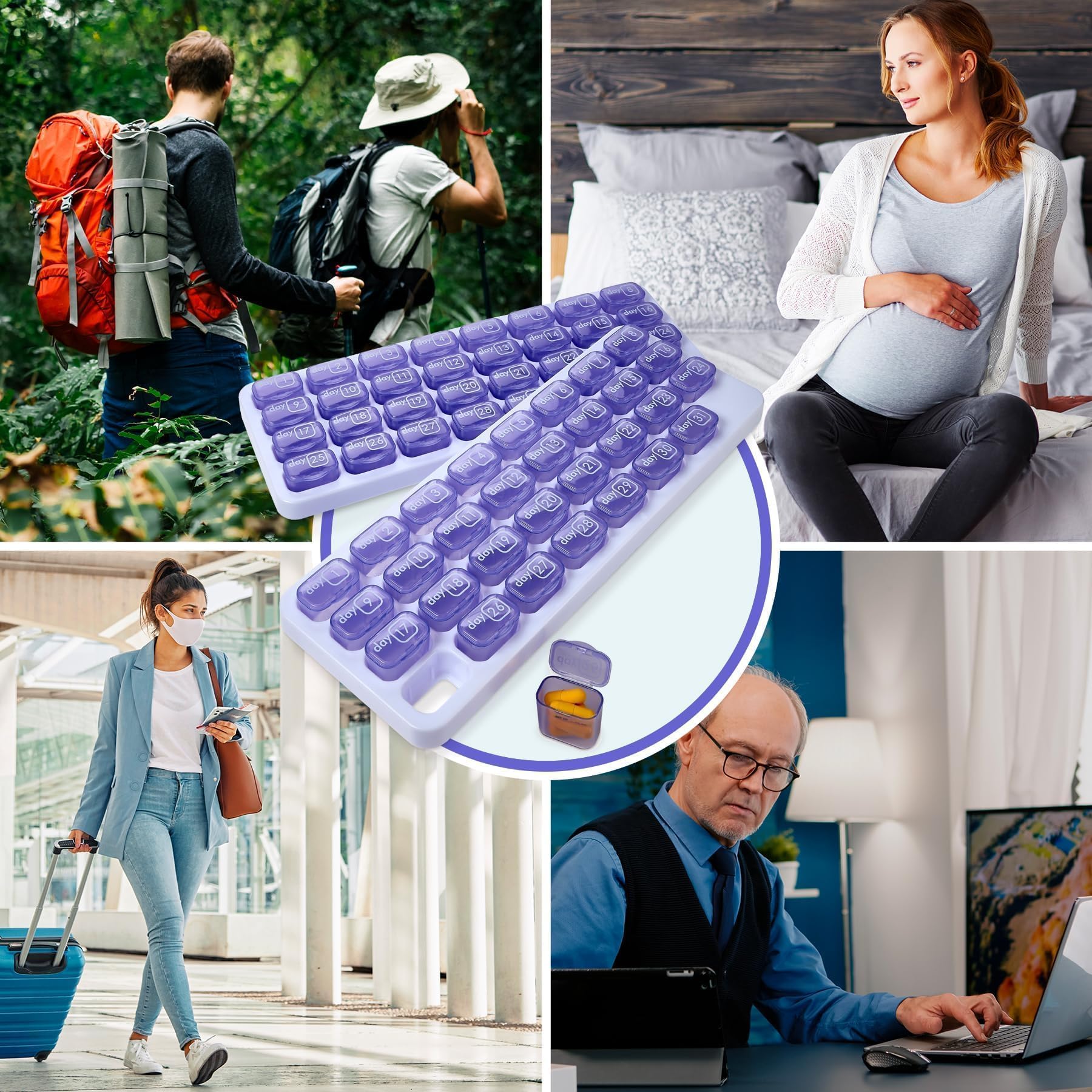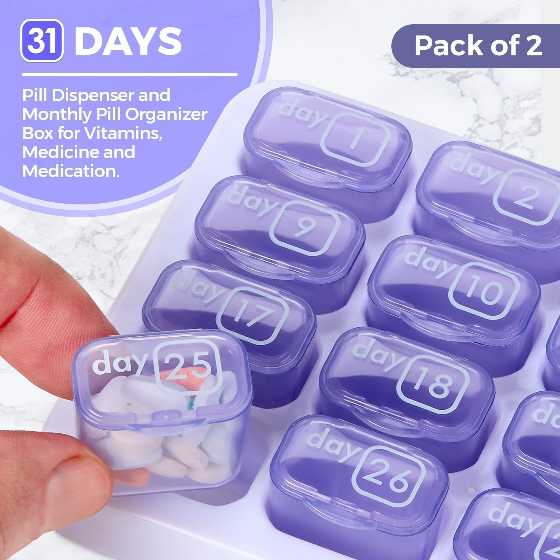 Monthly Pill Organizer - (Pack of 2) 31 Day Pill Organizer with Large Removable Medication Pods, Portable Pill Case Box and Holder for Daily Medicine and Vitamins for Travel, Purple