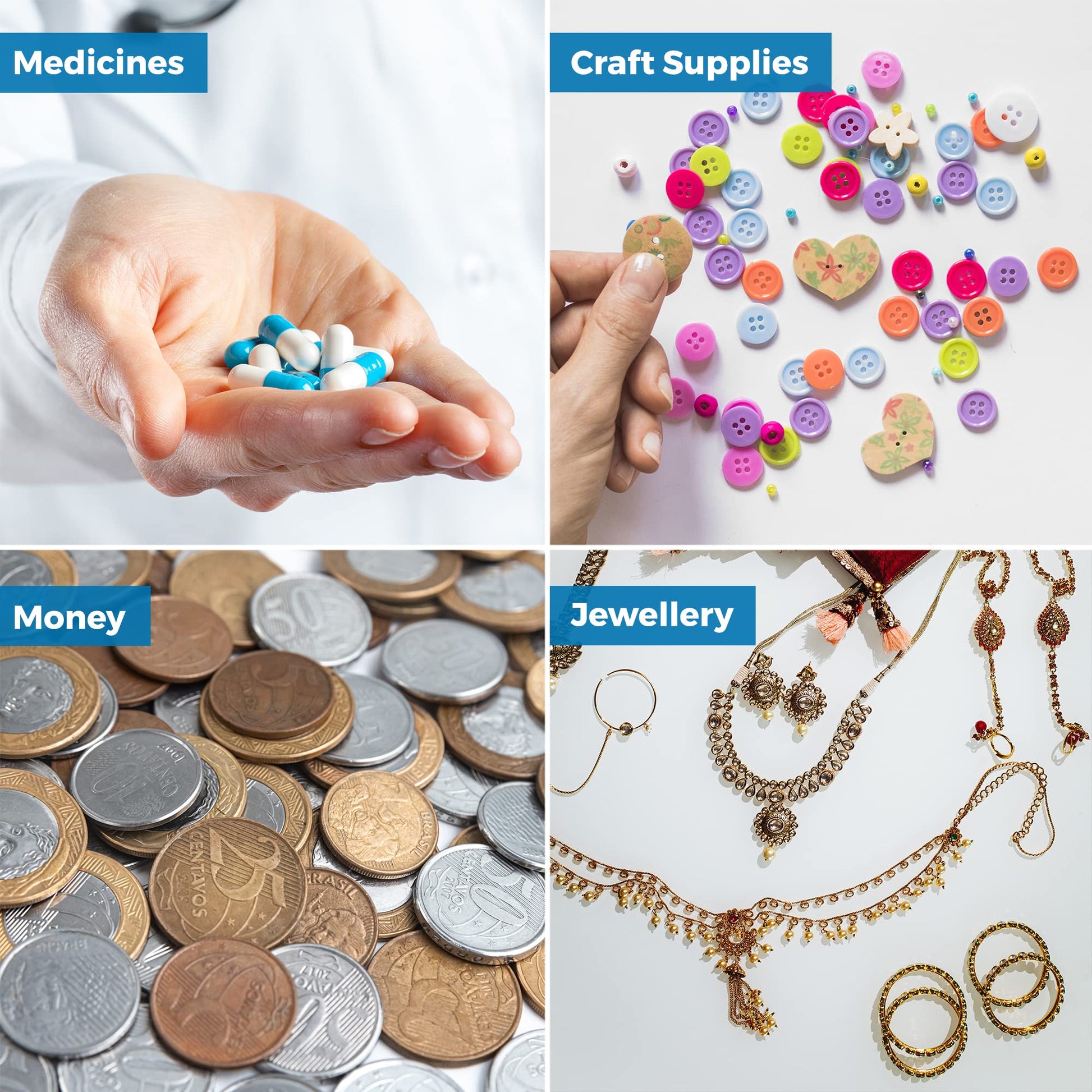 - AMAZING VALUE! BULK PACK OF 100: 4'' x 2.75" Inch Bags - This bulk pill bag pack comes with 100 Pill Pouch Bag for your convenience so you can make your medication and health management much easier. These reusable pouches are not only for pills or vitamins but they're also great for beads, jewelry, earrings, samples, powder, sprinkles, guitar picks, anything you can think of - This is great for you because now you be more organized and won't have to worry about losing anything. Guaranteed!