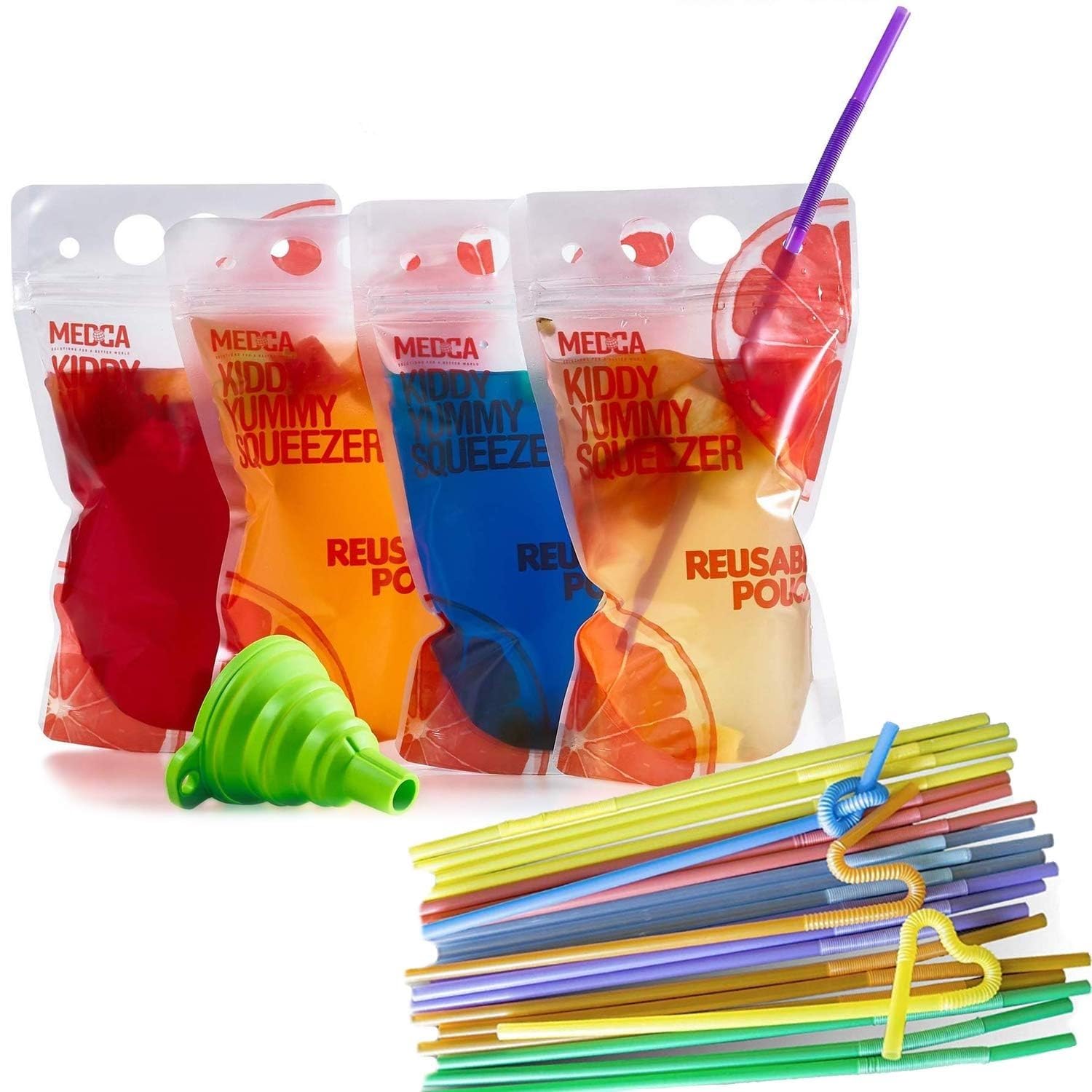 - TRUSTED BRAND! 100% SATISFACTION GUARANTEE: There's no question, our New Design reusable drink pouches have everything you're looking for! At MEDca you can be confident that your satisfaction is always our top priority and that we'll do everything in our power to make sure you have an excellent customer experience. It's that simple.