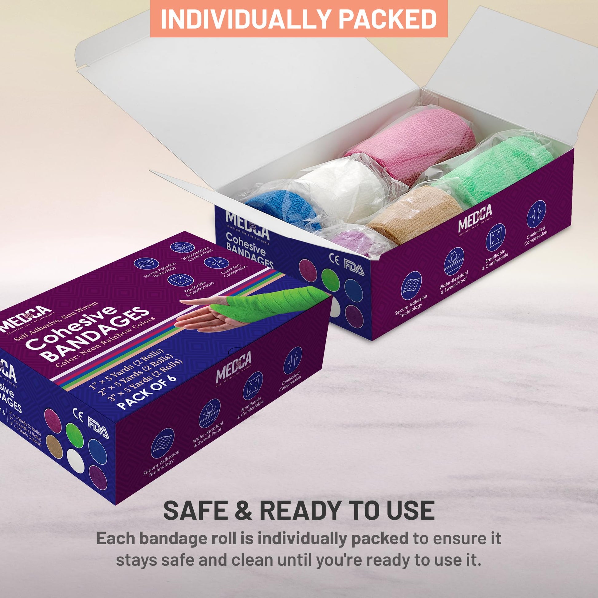 - ✅ STRONG & SOFT HIGH QUALITY SELF-ADHESIVE: The MEDCA strong self-adherent tape offers you the best support for controlled compression or securing dressings & devices without the need of using pins or tape to keep it in place. The soft flexible material is WATER-RESISTANT which means it will not come loose by sweat or water. Each roll is individually wrapped and can be torn without using scissors.