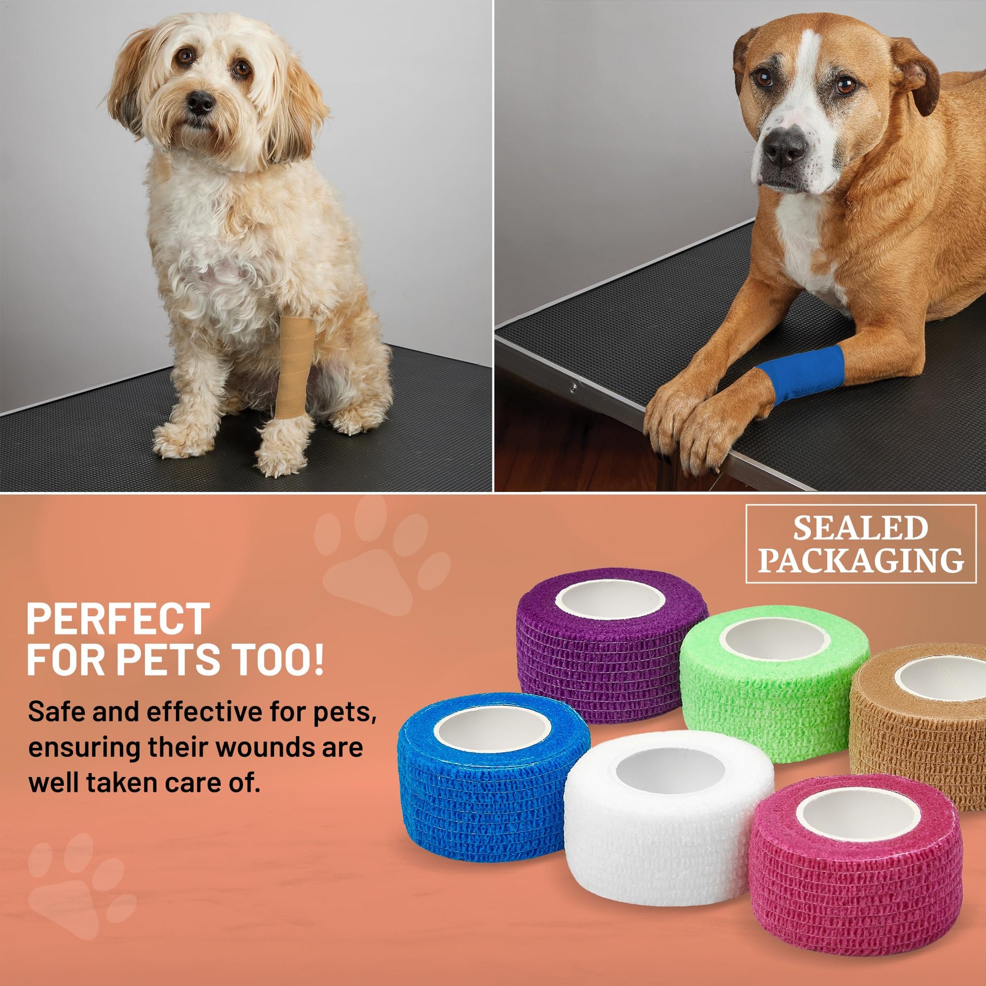 Self Adherent Cohesive Wrap Bandages - (Pack of 12 Rolls) 1 Inch X 5 Yards with Strong Elastic and Colorful First Aid Tape for Sprain Swelling and Soreness o...