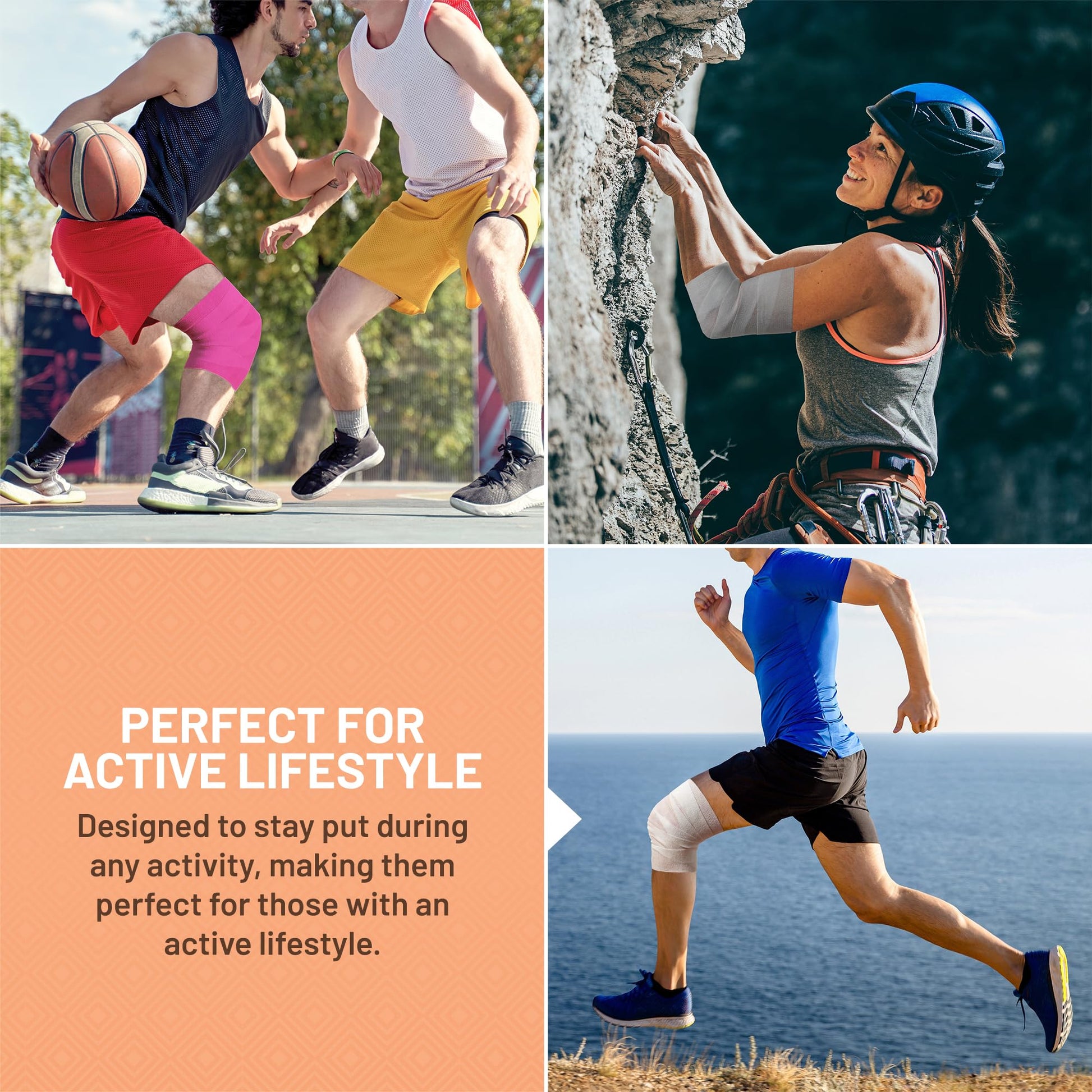 - SELF-ADHESIVE DESIGN- These elastic bandages are far better than the non-adhesive ones as they have self-adhering ability so that the tape doesn't loosen and fall off easily. No more worries about prickly pins! It's perfect for playful children!