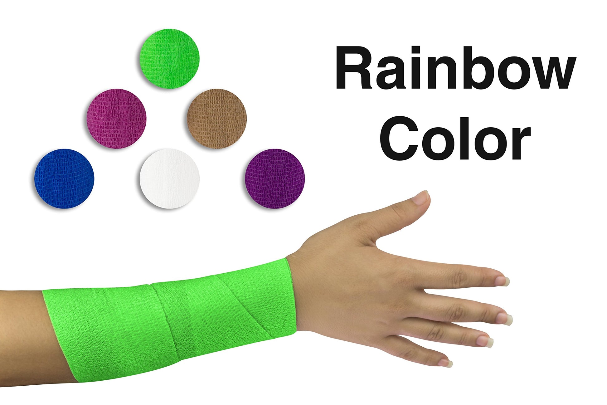 Self Adherent Wrap - Bulk Pack of 6, Athletic Tape Rolls and Sports Wraps, Self Cohesive Non-Woven Adhesive Bandage (3 In x 5 Yards) for Ankle Sprains & Swelling