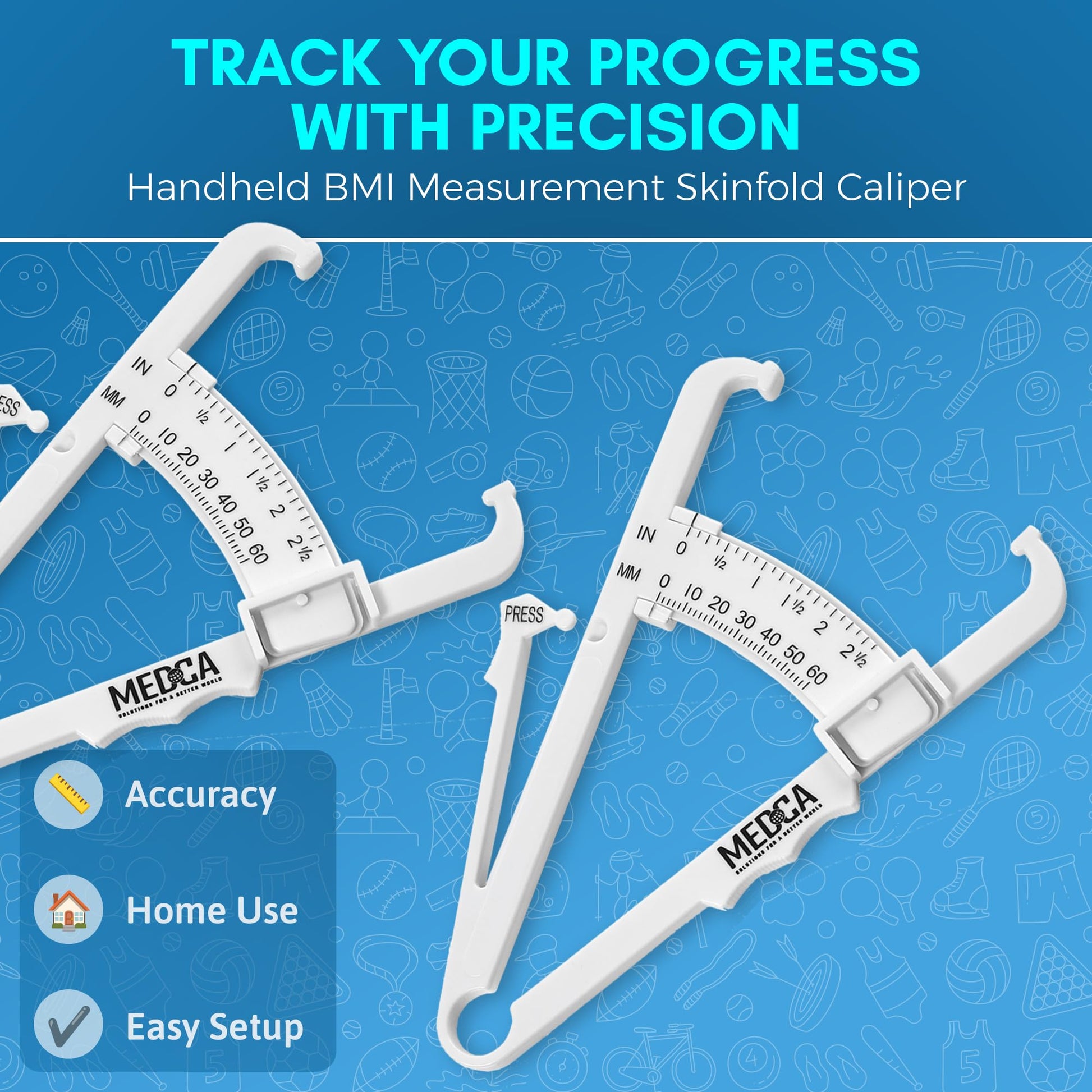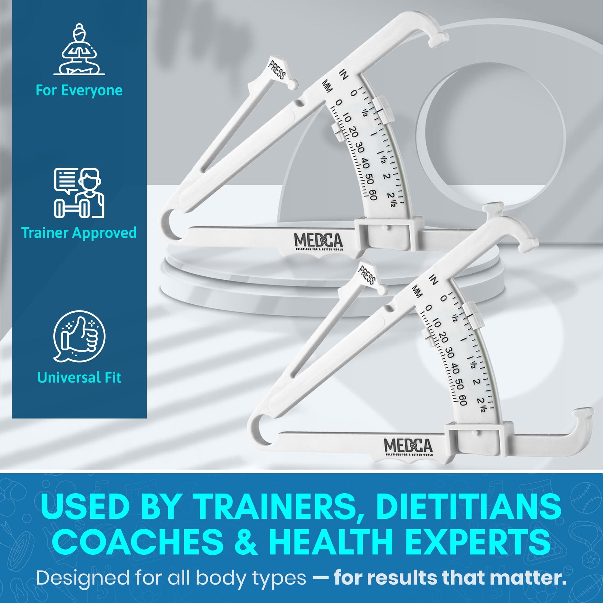 - PACK OF 2 - ACCURATELY DETERMINE YOUR BODY FAT PERCENTAGE: Manage your health wisely with the newly designed MEDca Body Fat Caliper Set to get the most accurate & consistent measurements every time. This caliper measuring tool design allows you to measure within a millimeter so you know you'll always get the best results