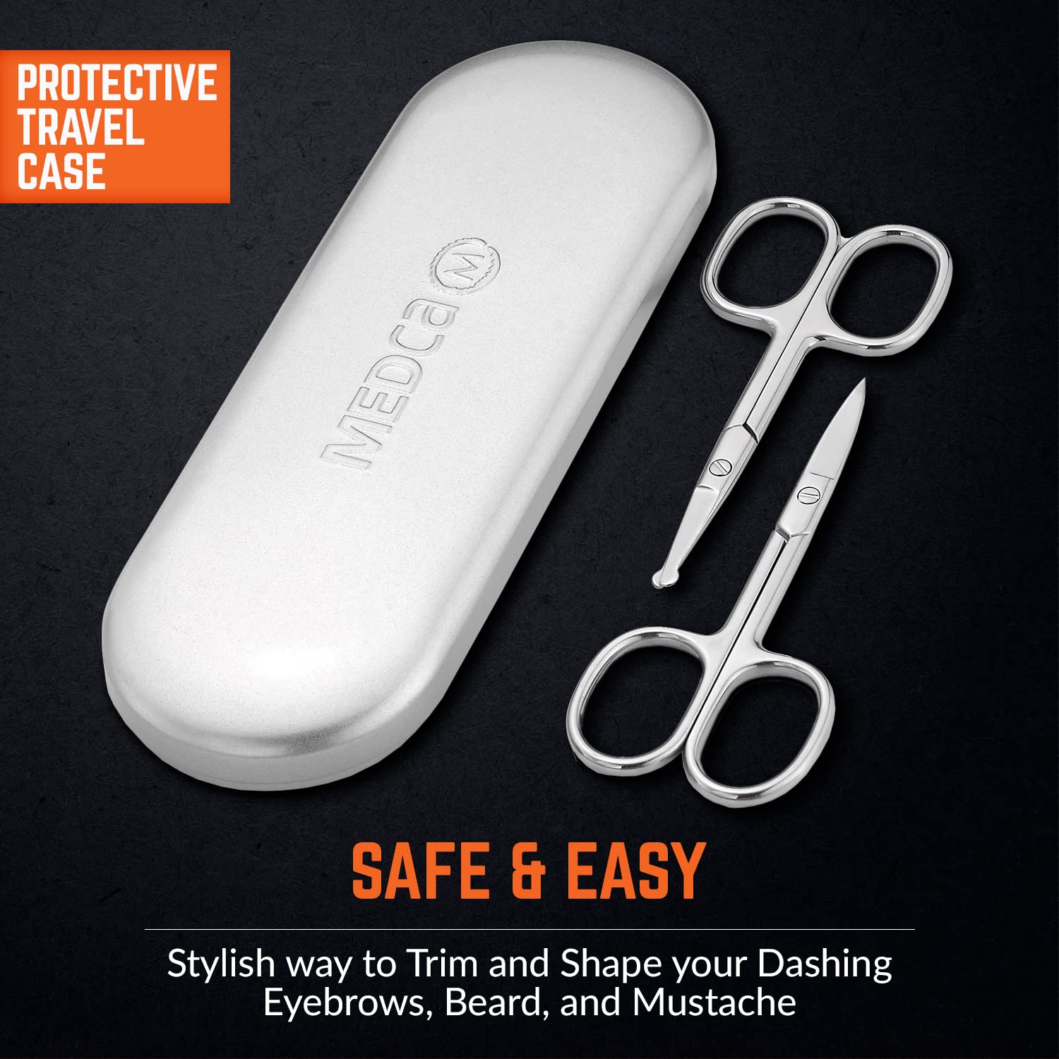 Stainless Steel Grooming Scissors - Eyebrow Scissor, Beard & Mustache Trimming Set, Small Curved & Rounded Tip Facial Hair Trimmer Kit for A Much Safer Ear, Nose Hair Clipper for Men & Travel Case