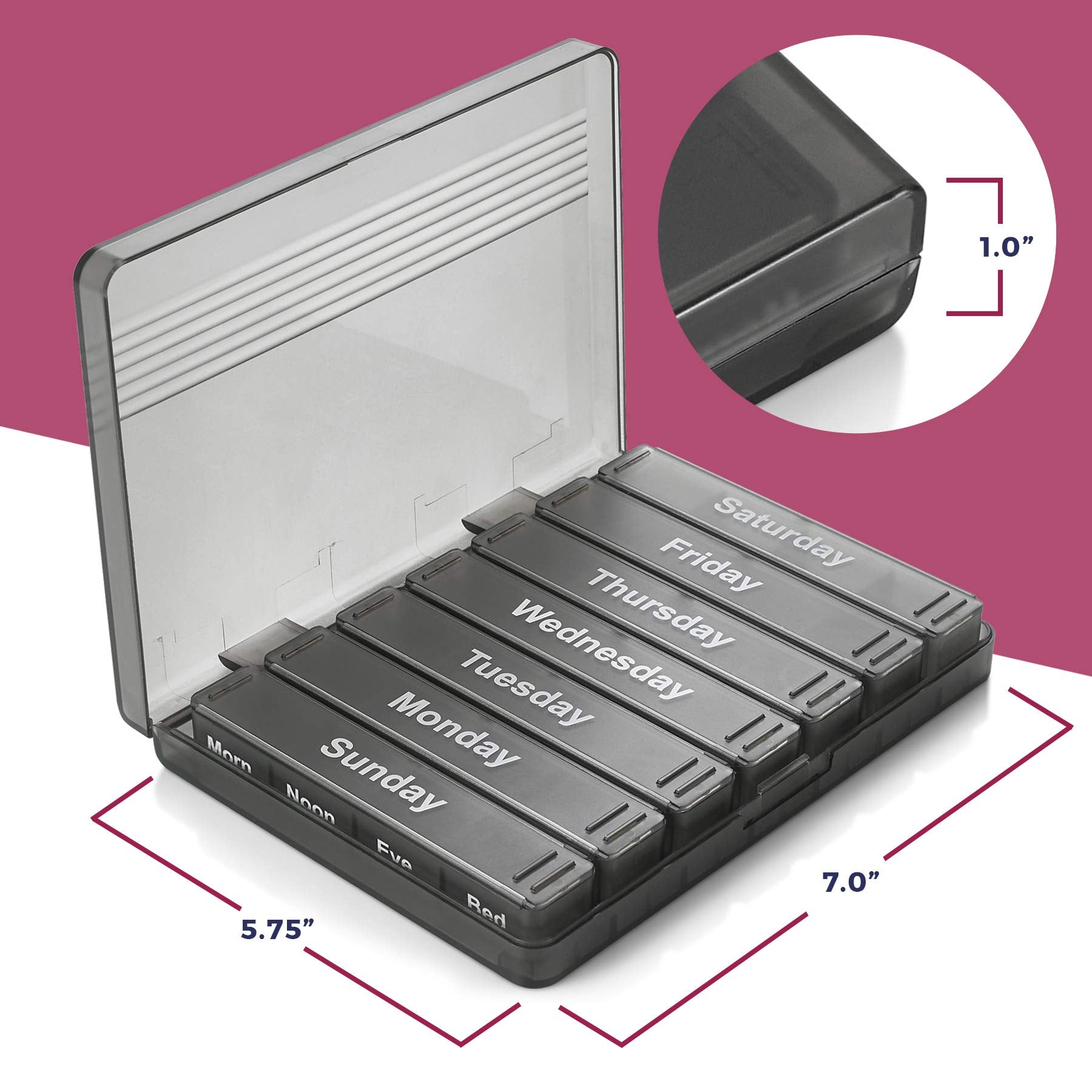 Weekly Pill Planner with Removable Daily Pill Cases