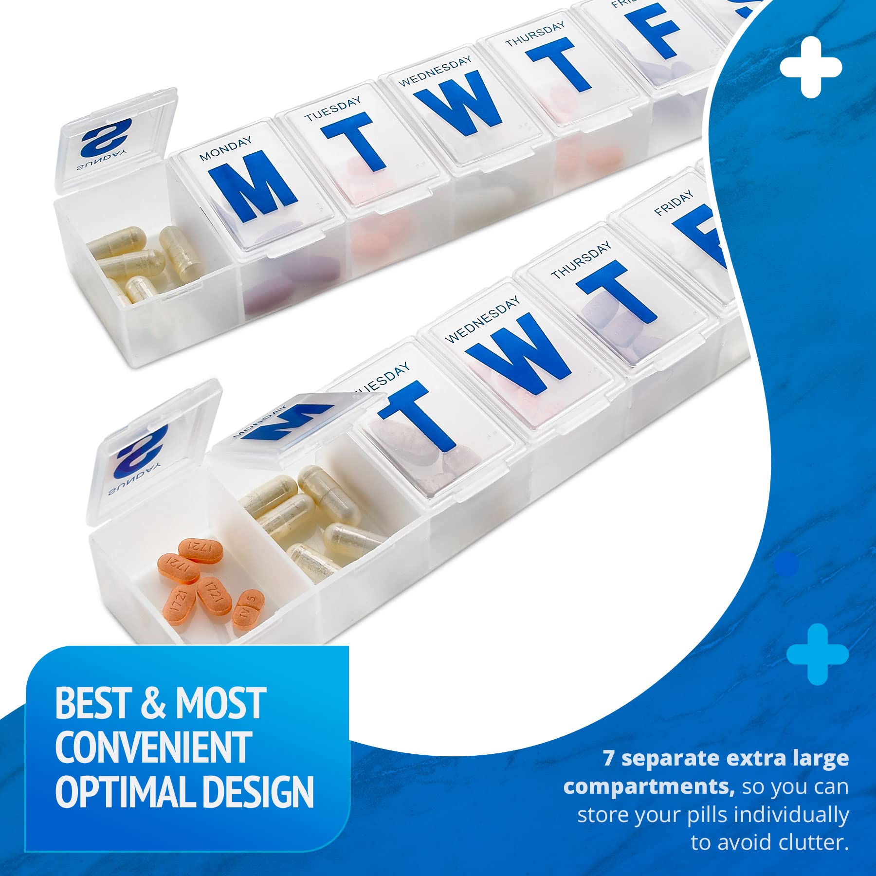 Weekly Pill Organizer - 7-Day Pill Planner Extra Large Pill Planner and Daily Pill Organizer and Medicine Reminder, Monday to Sunday Compartments - BPA Free ...