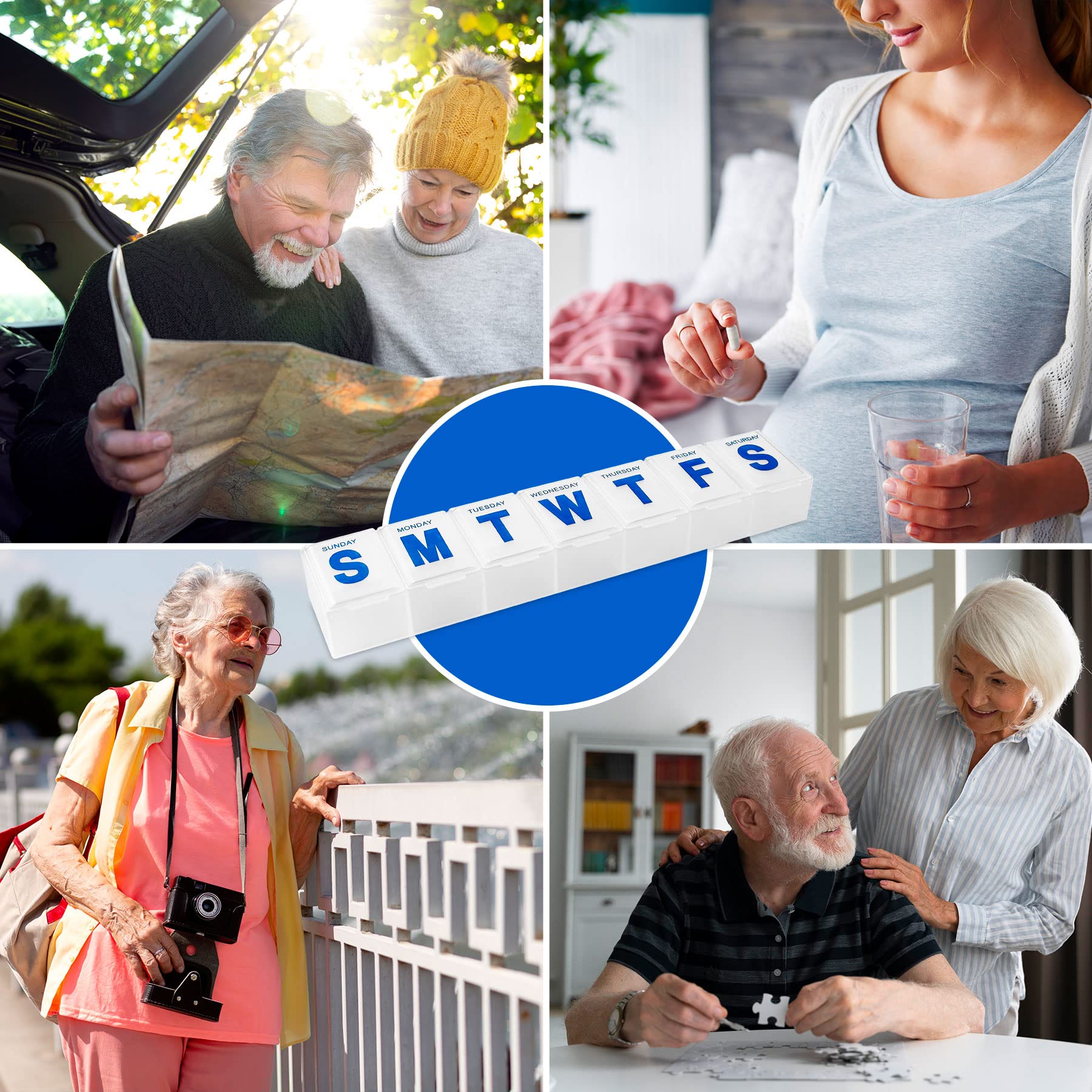 - ABSOLUTE MEDI-PLANNER: The pill reminder is translucent and every lid is labeled with one weekday, to help you plan your 7 day medication accurately